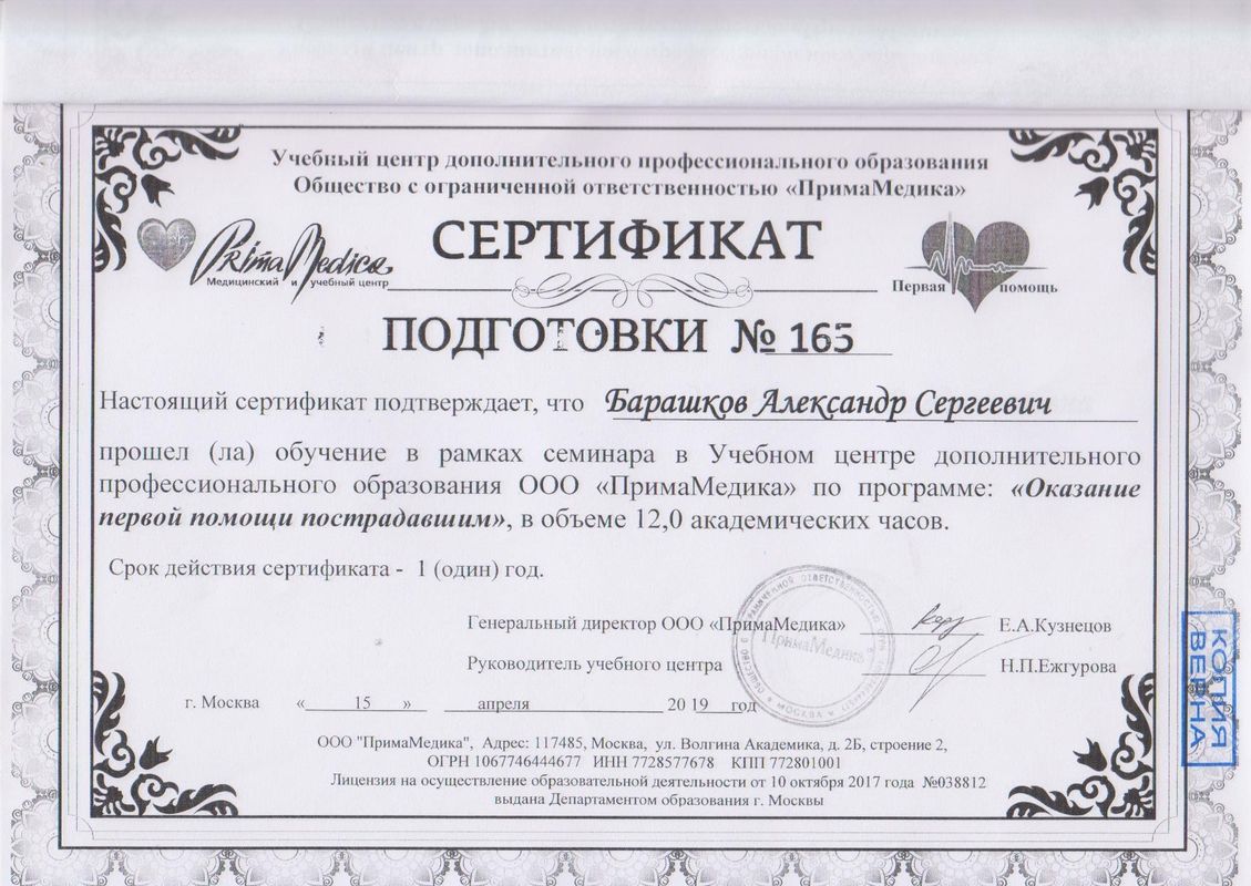 | Сведения о профессиональной переподготовке | отсутствуют |