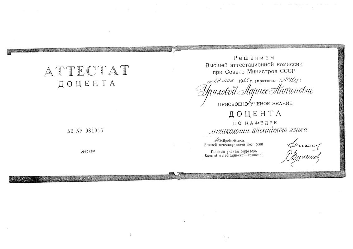 | Общий стаж работы | с 1970 года (в том числе педагогический) |
